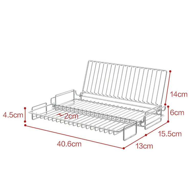 Kích thước tổng thể là 40,6 cm/15,98in, chiều cao thân chính là 6 cm/2,36in, chiều cao cạnh dọc là 14 cm/5,51in, chiều rộng mở rộng bên là 15,5 cm/6,1in, khoảng cách thoát nước là 2 cm/0,78in. Thiết kế này phù hợp với hầu hết các bồn rửa một khe/hai khe trong gia đình và đảm bảo nước chảy qua nhanh chóng, tránh hiện tượng đọng nước.